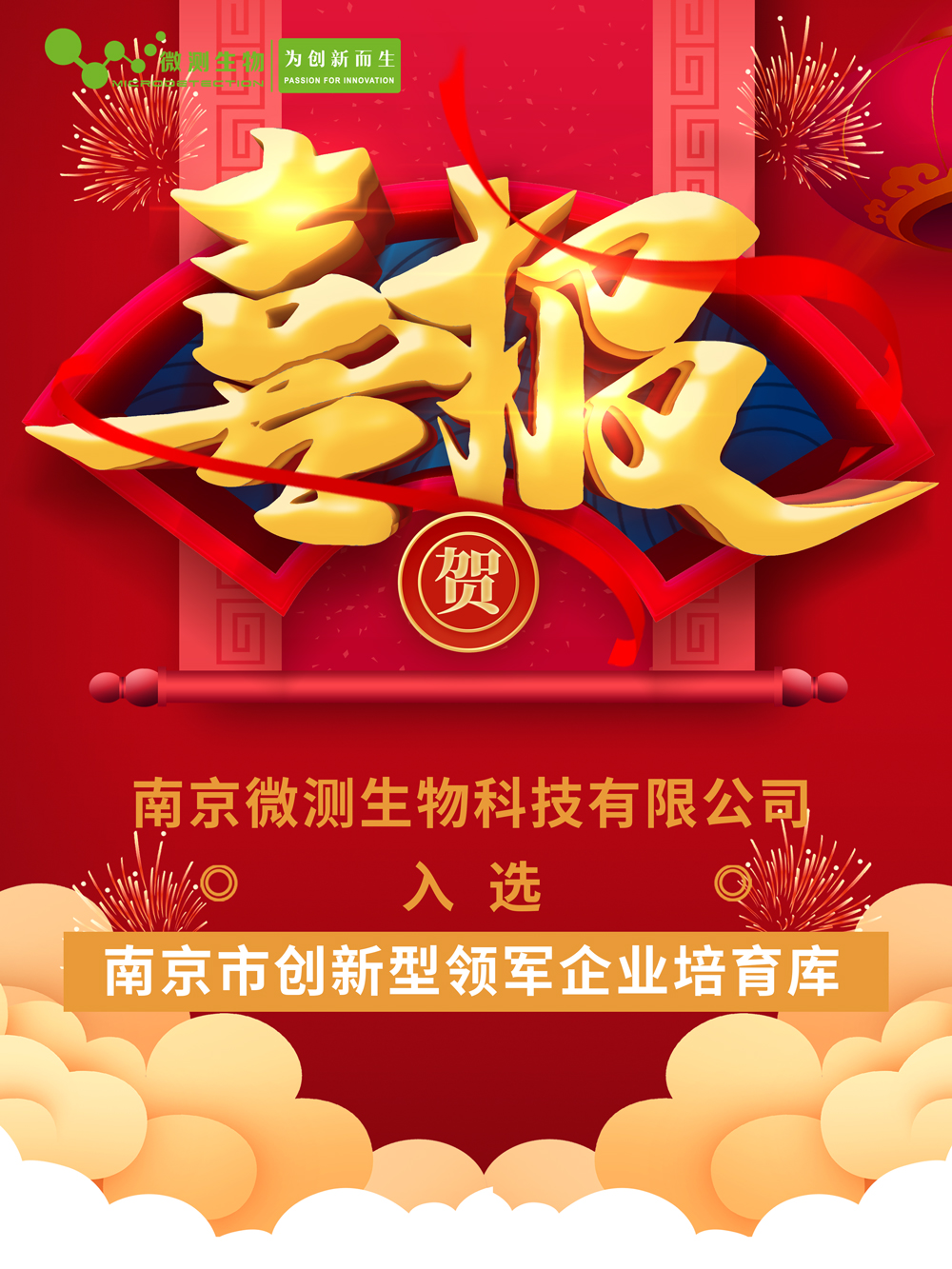 南京微測生物科技有限公司成功入選2021年度南京市創(chuàng)新型領(lǐng)軍企業(yè)培育庫入庫企業(yè)榜單。